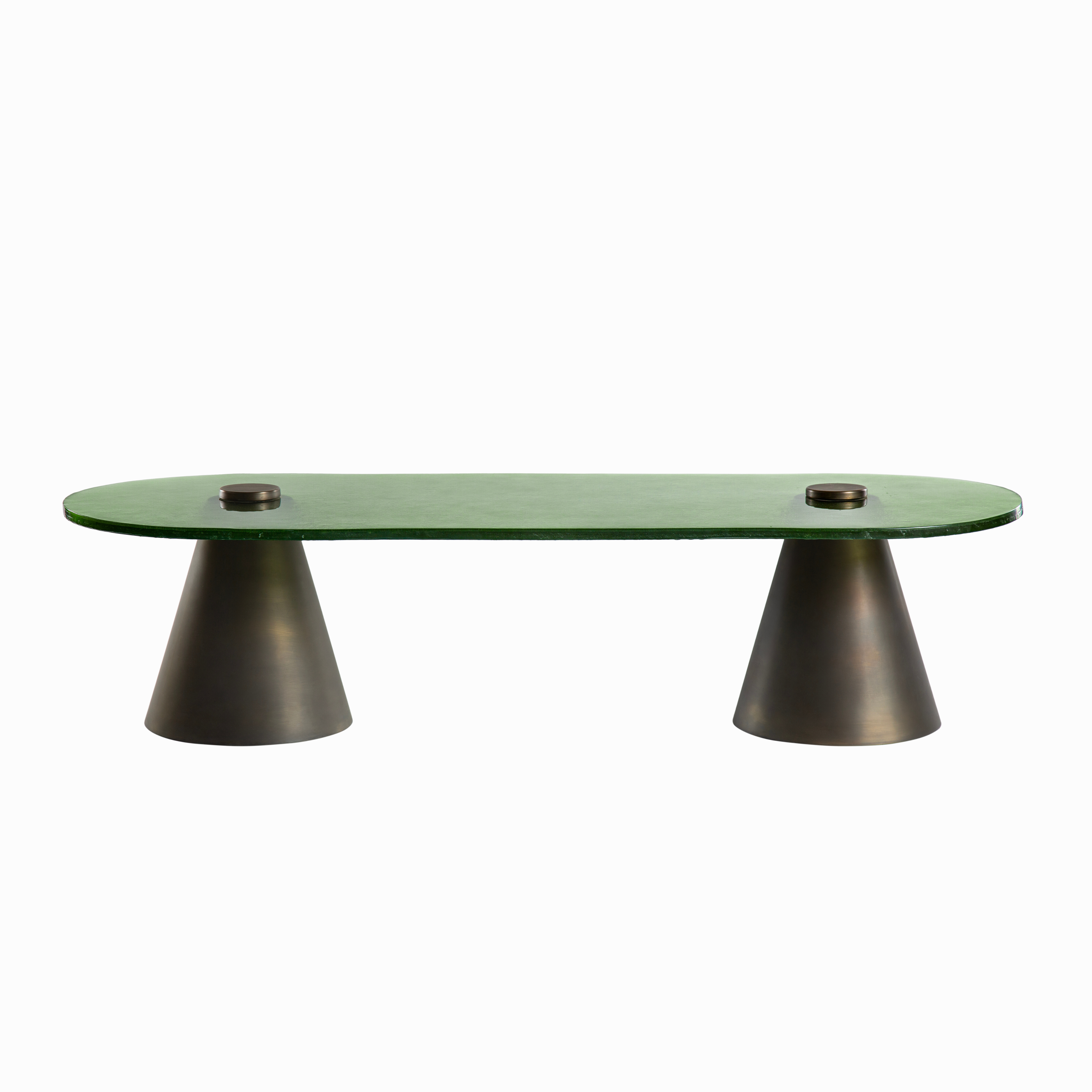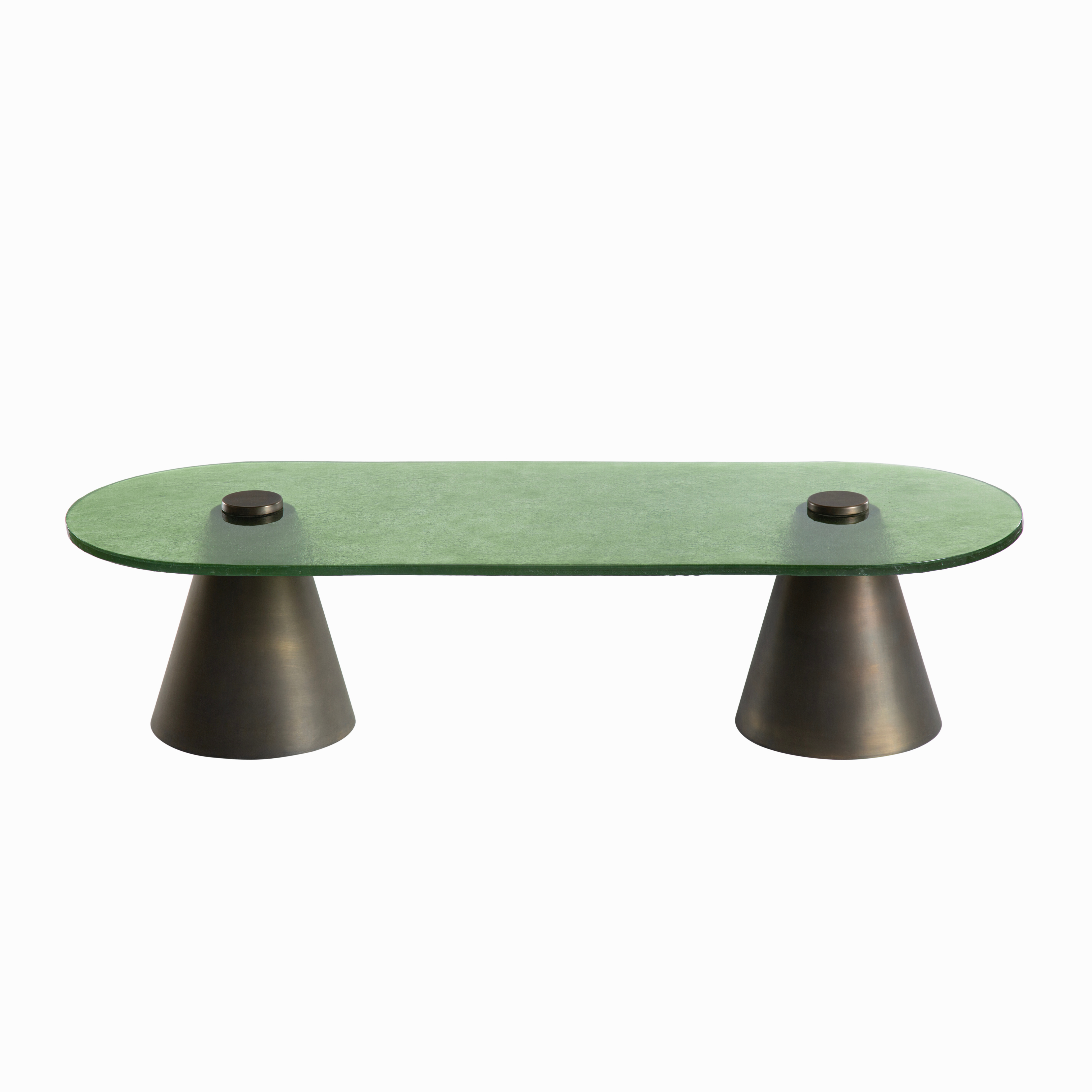 Experience the elegant fusion of the Sisters Coffee Table. Hand-blown glass meets a sleek brass base in this versatile design, perfect for adding a touch of modern sophistication to any space. Pair it with the Sisters Side Table duo for a striking harmony of color and form.